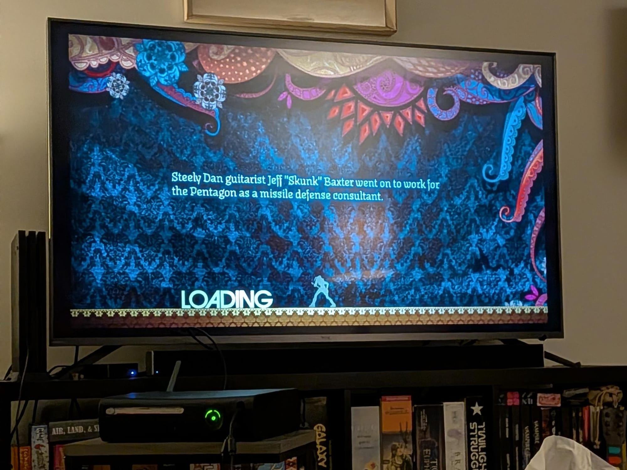 Guitars passed around. Turns were taken at the mic. All those years ago I only knew Steely Dan from "Dirty Work," but my mature, refined taste was delighted to find "Bodhisattva," off their underrated second album. Trying to keep up with Donald Fagen's bleating vocals nearly killed me, but I—we—made it. (The astute reader will note that, for simplicity's sake, I'm mixing up our playthroughs of the first and second games in the series.)
